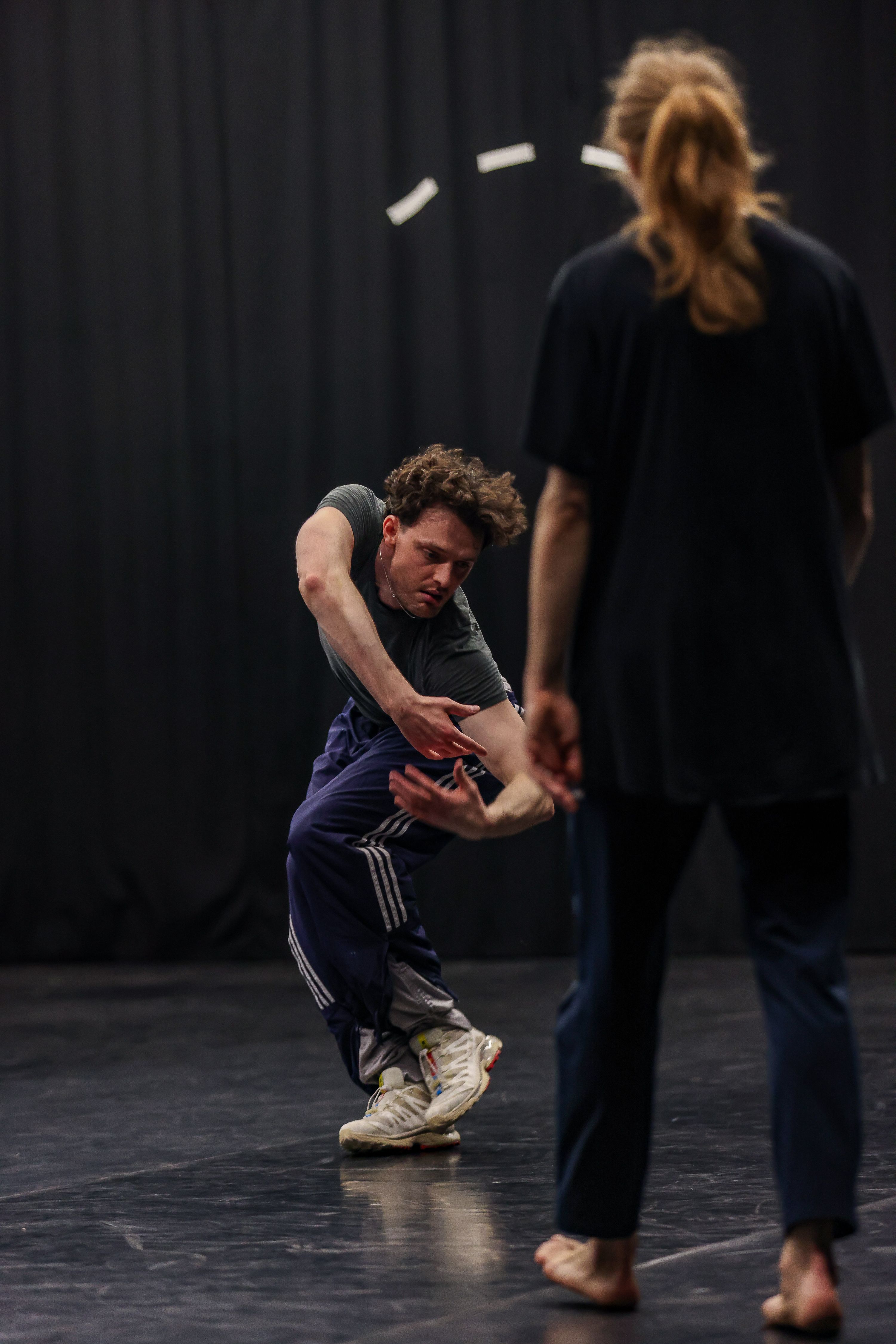 Im zweiten Teil kann das Publikum sich frei zwischen den Tänzer*innen bewegen. Es werden Sitzmöglichkeiten angeboten.