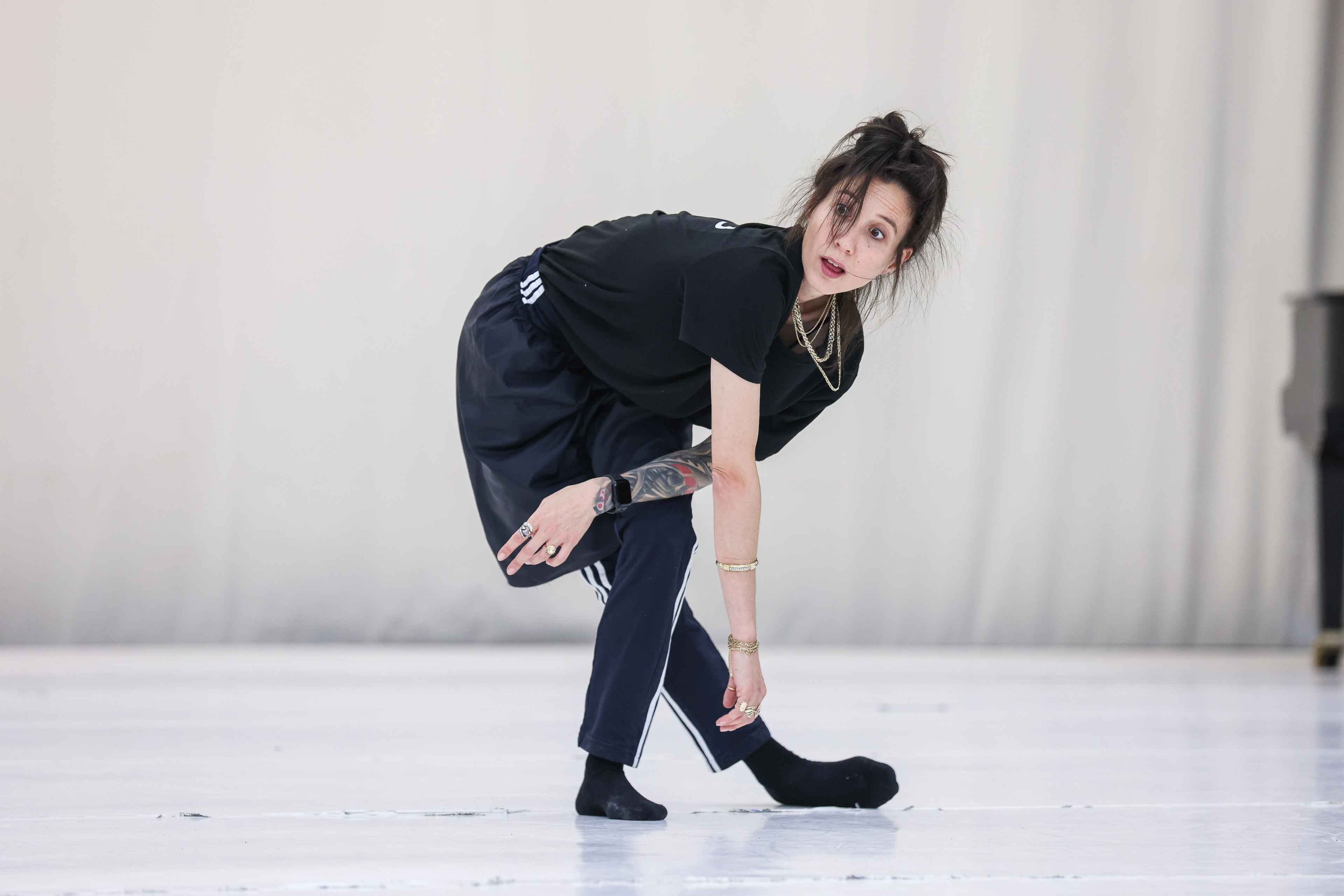 Es geht ihr dabei nicht um das psychologische Erleben, sondern um den Körper. Ein Prinzip, das diese Verletzlichkeit ermöglicht, ist, sich an den Übergängen aufzuhalten, in denen etwas weder das eine noch das andere ist. So richtet sich die Aufmerksamkeit des Publikums darauf, wie Bewegung entsteht, und nicht auf die einzelnen Bewegungen. In Crisps Praxis sind Brüche ebenso gültig und wichtig wie der Flow. Das Werk wird in einem Setting präsentiert, in dem das Publikum sich im Raum bewegen und den Tänzer*innen nahekommen kann. Der Pianist und Komponist Frédéric Blondy wird live improvisieren und den Tanz mit seinem ebenso körperlichen Klavierspiel bereichern.