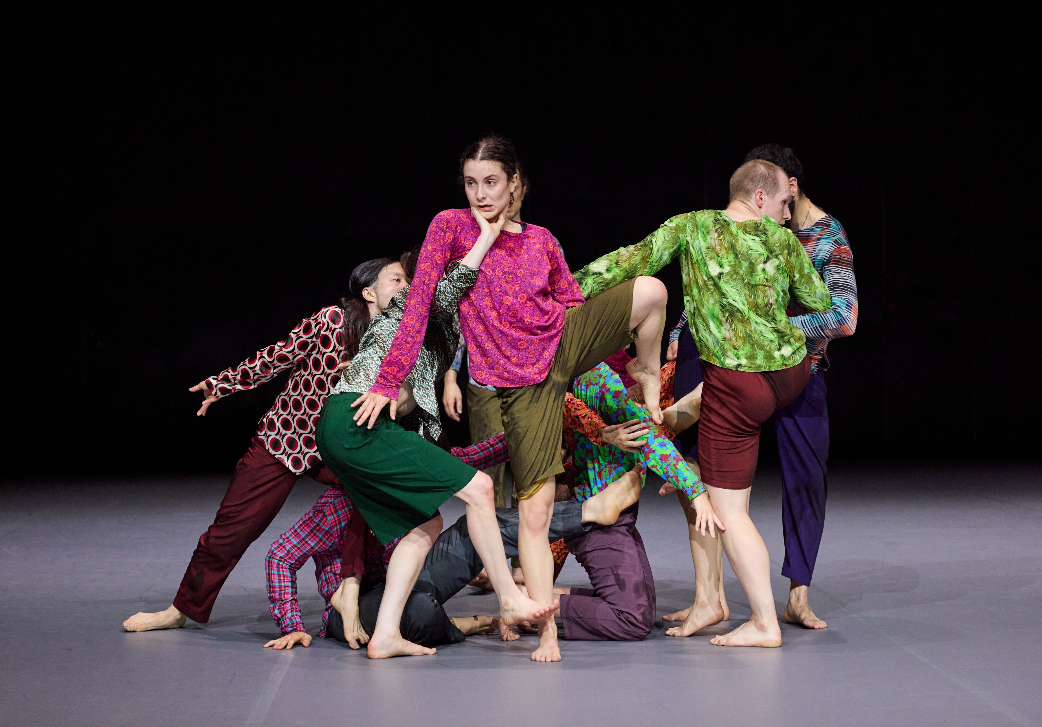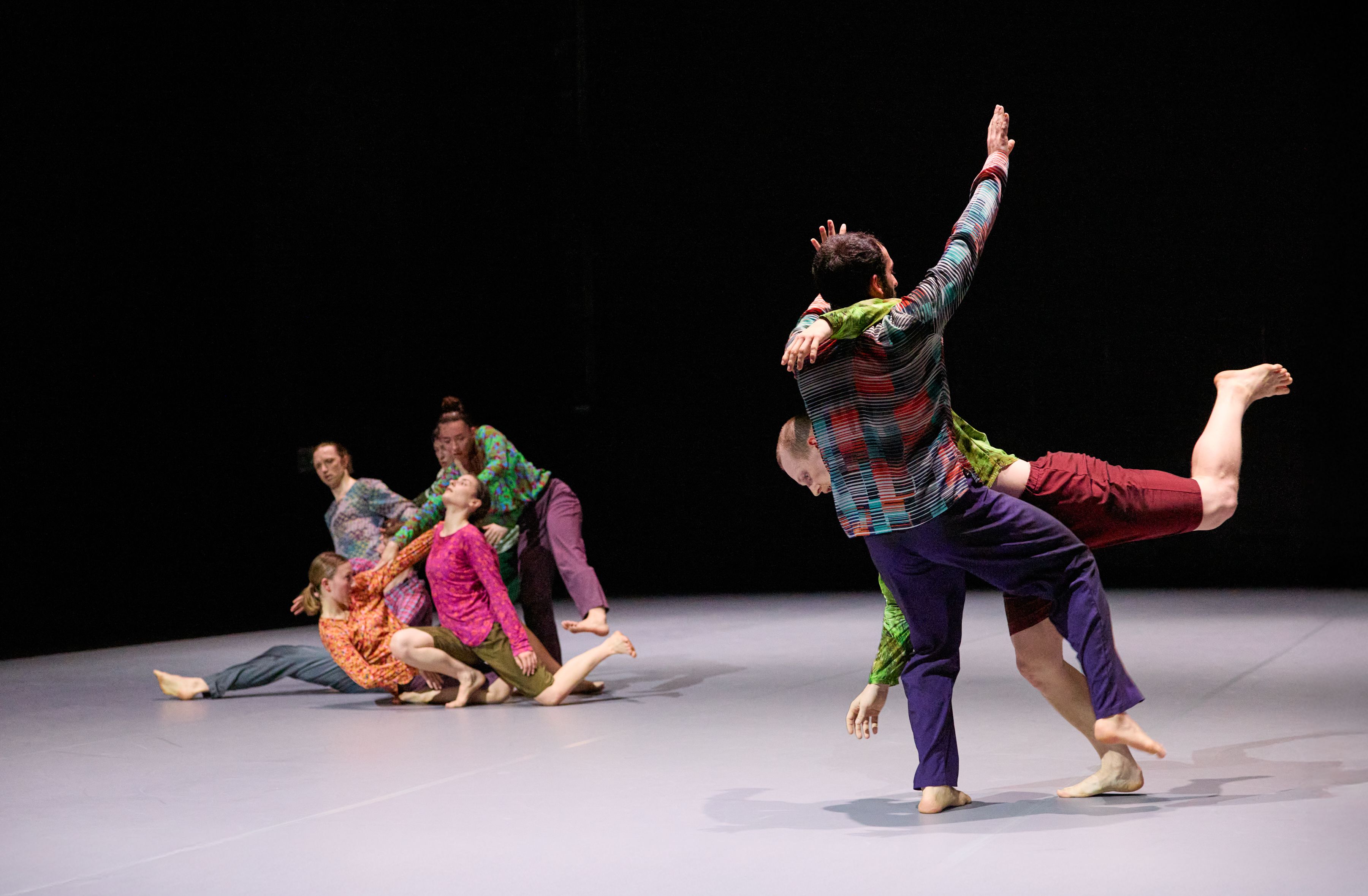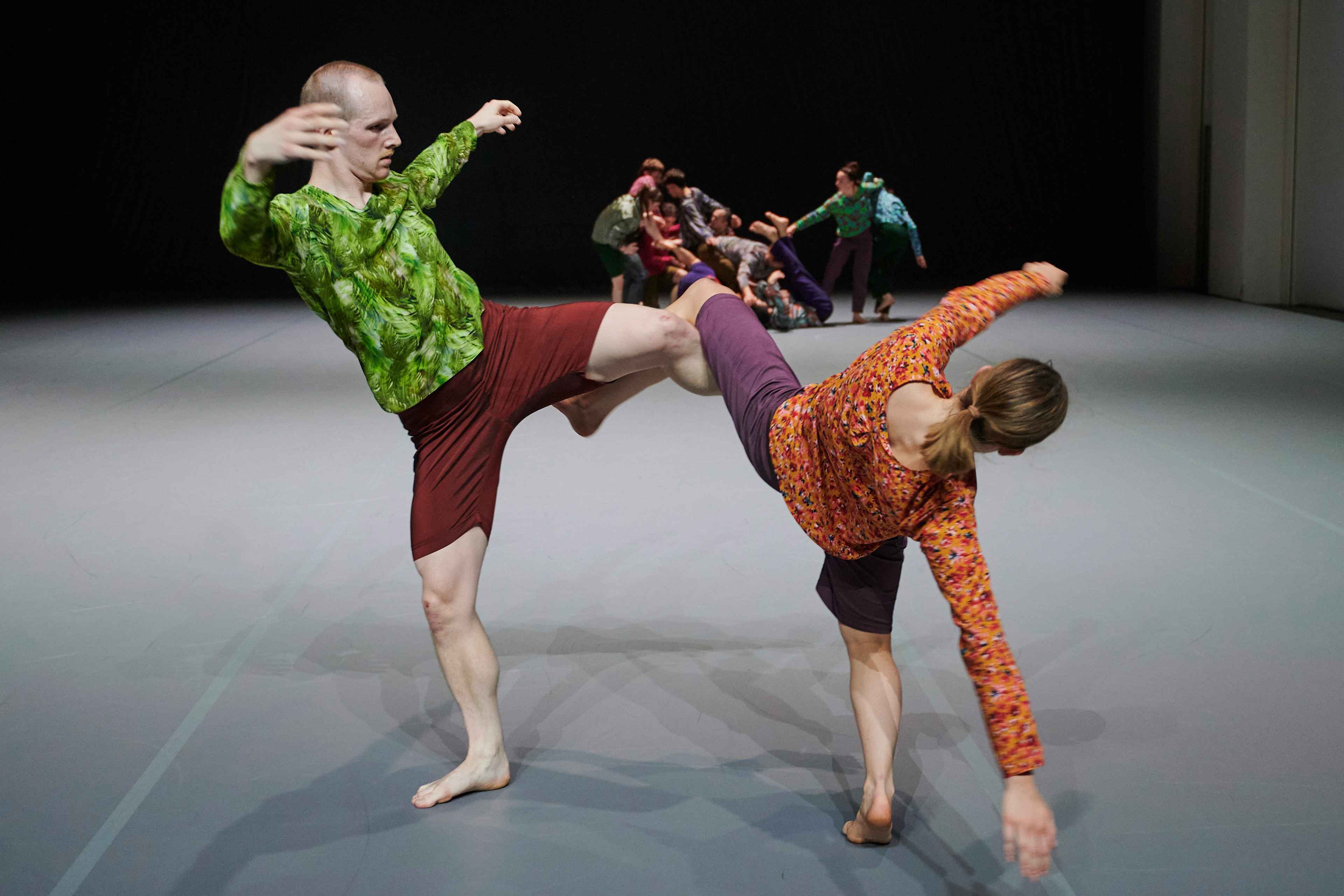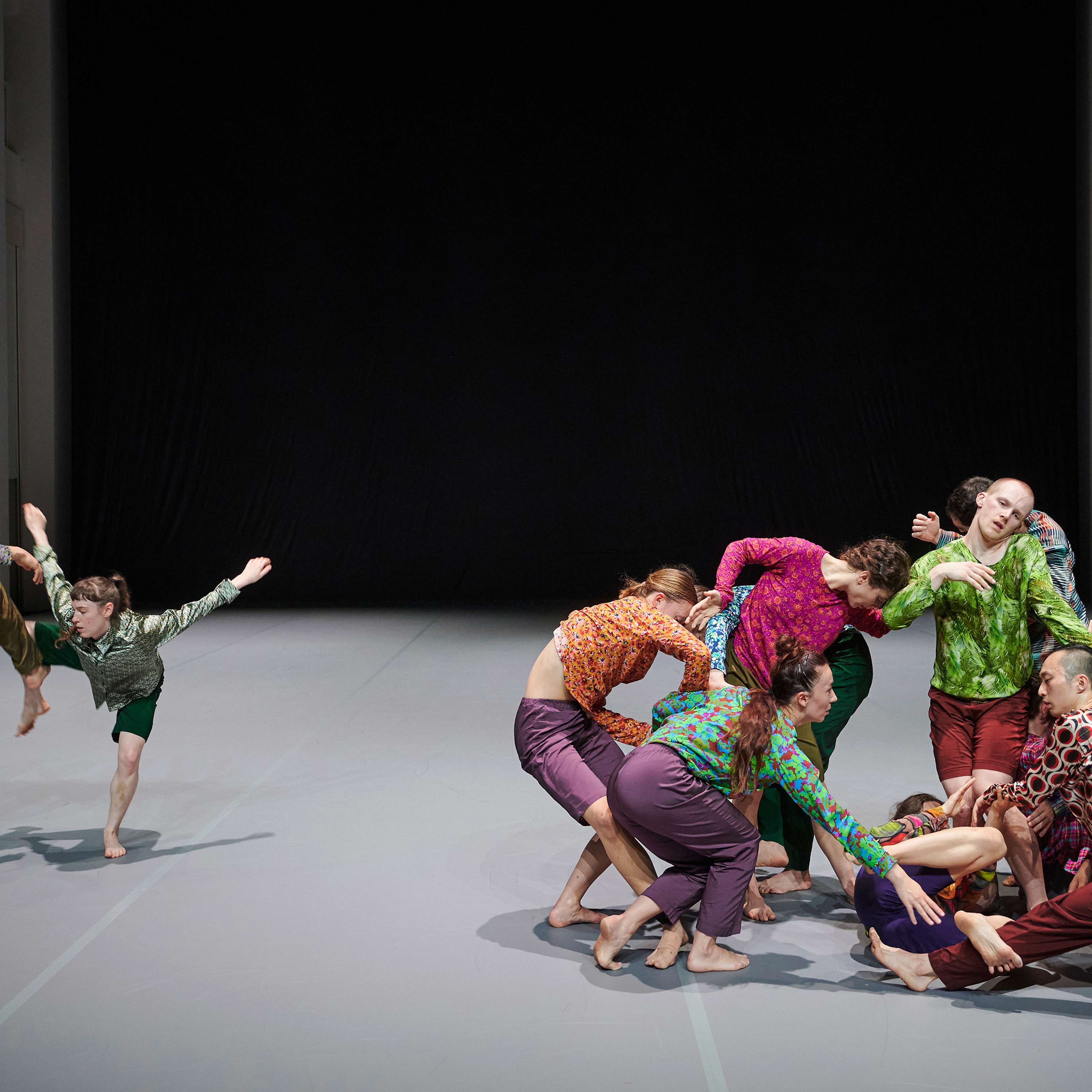 Nun kehrt Forsythe an den Ort seines langjährigen Schaffens zurück und entwickelt zum ersten Mal für die Company wieder eine neue Arbeit. Ausgehend von einem improvisatorischen Baukasten erschafft er eine strukturelle Ordnung, die anstatt für etwas anderes zu stehen, aus sich selbst heraus einen ästhetischen Genuss anbietet. Wie in einem Kaleidoskop bilden sich Muster, die innerhalb eines klaren Rahmens immer wieder unvorhersehbar und überraschend sind. Die Tänzer*innen erkunden das Bewegungssystem, das sie selbst bilden, bis an seine Grenzen. Das Publikum ist eingeladen, dieser Erforschung zu folgen und das Werk als lebendiges, atmendes System zu erleben.