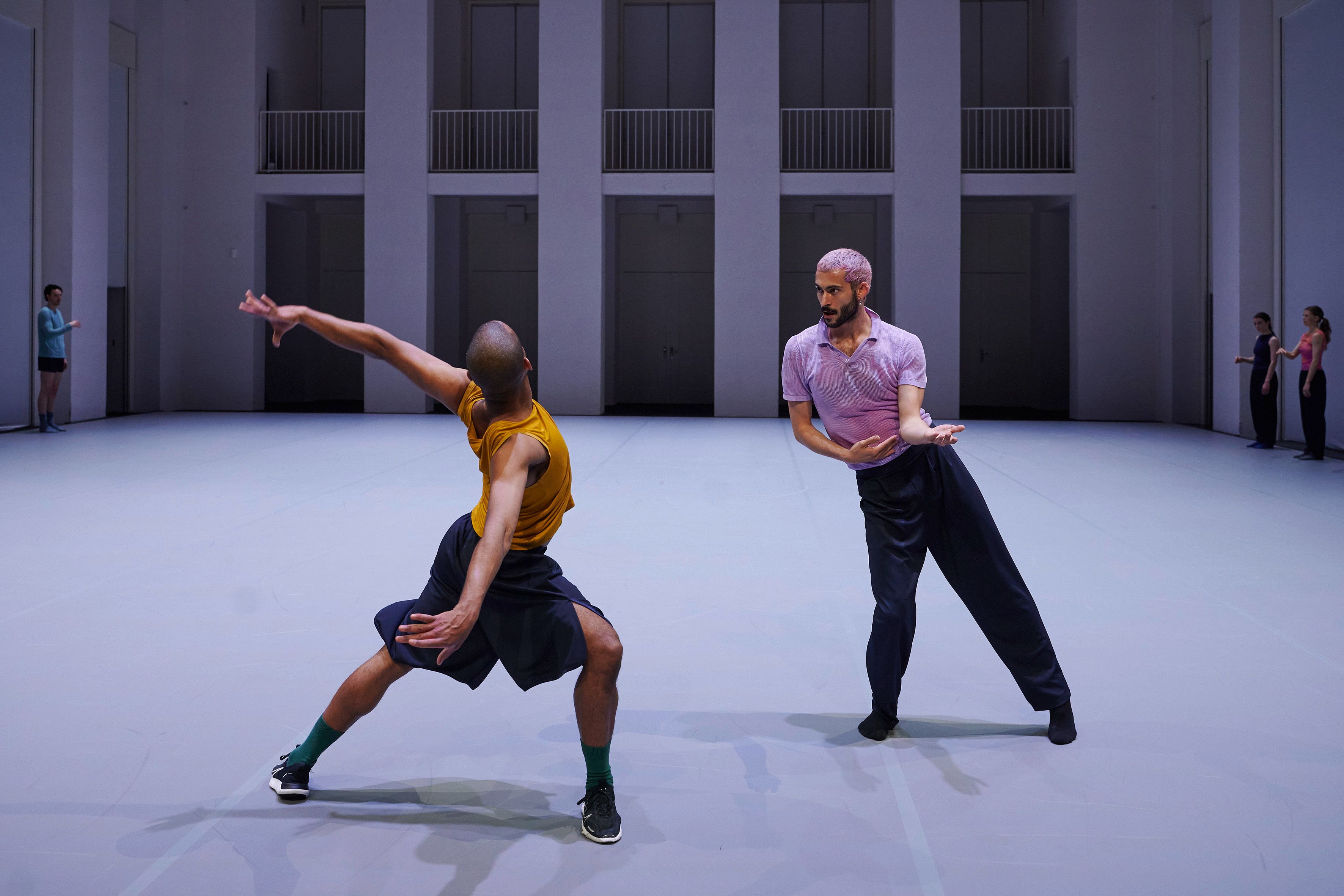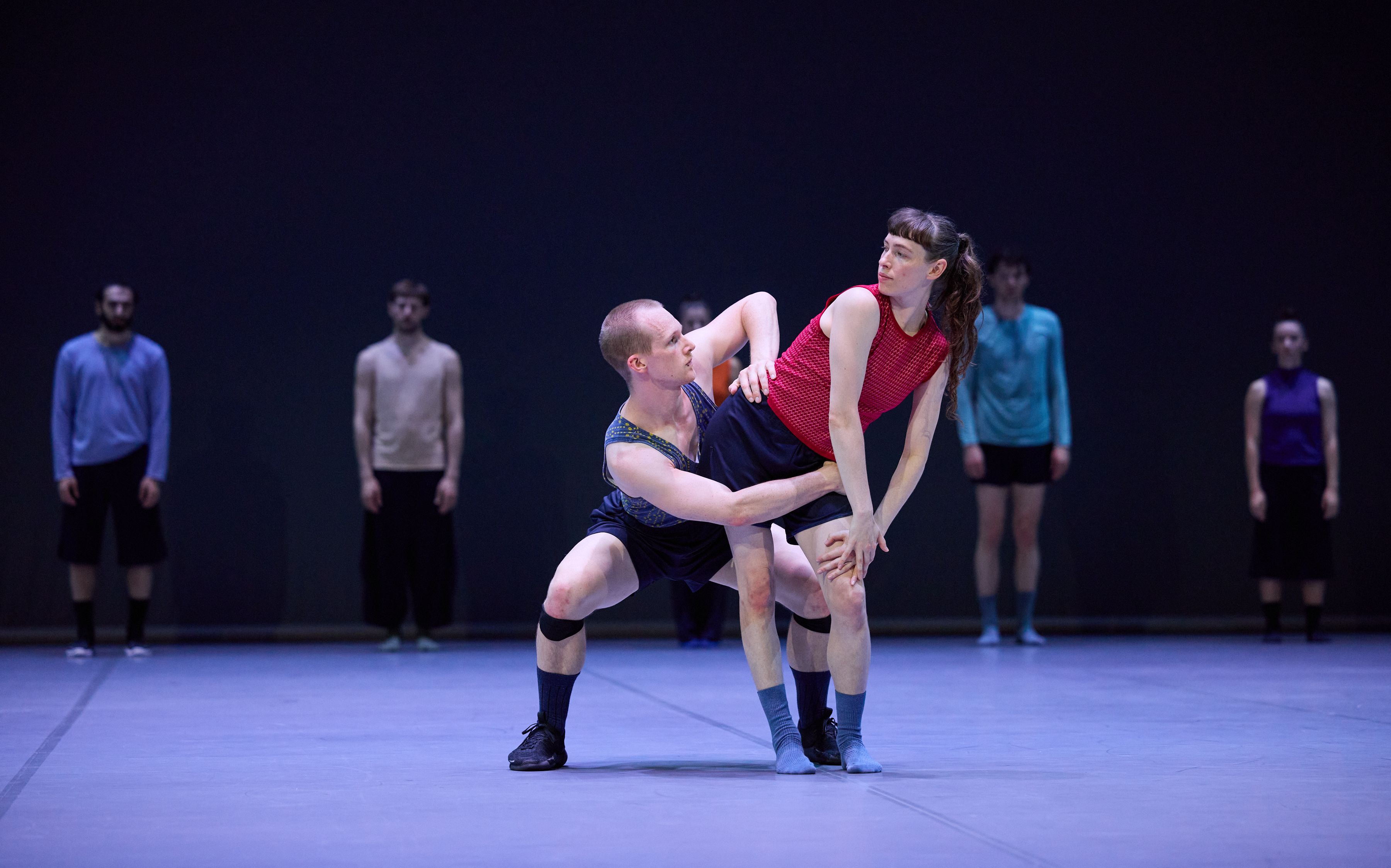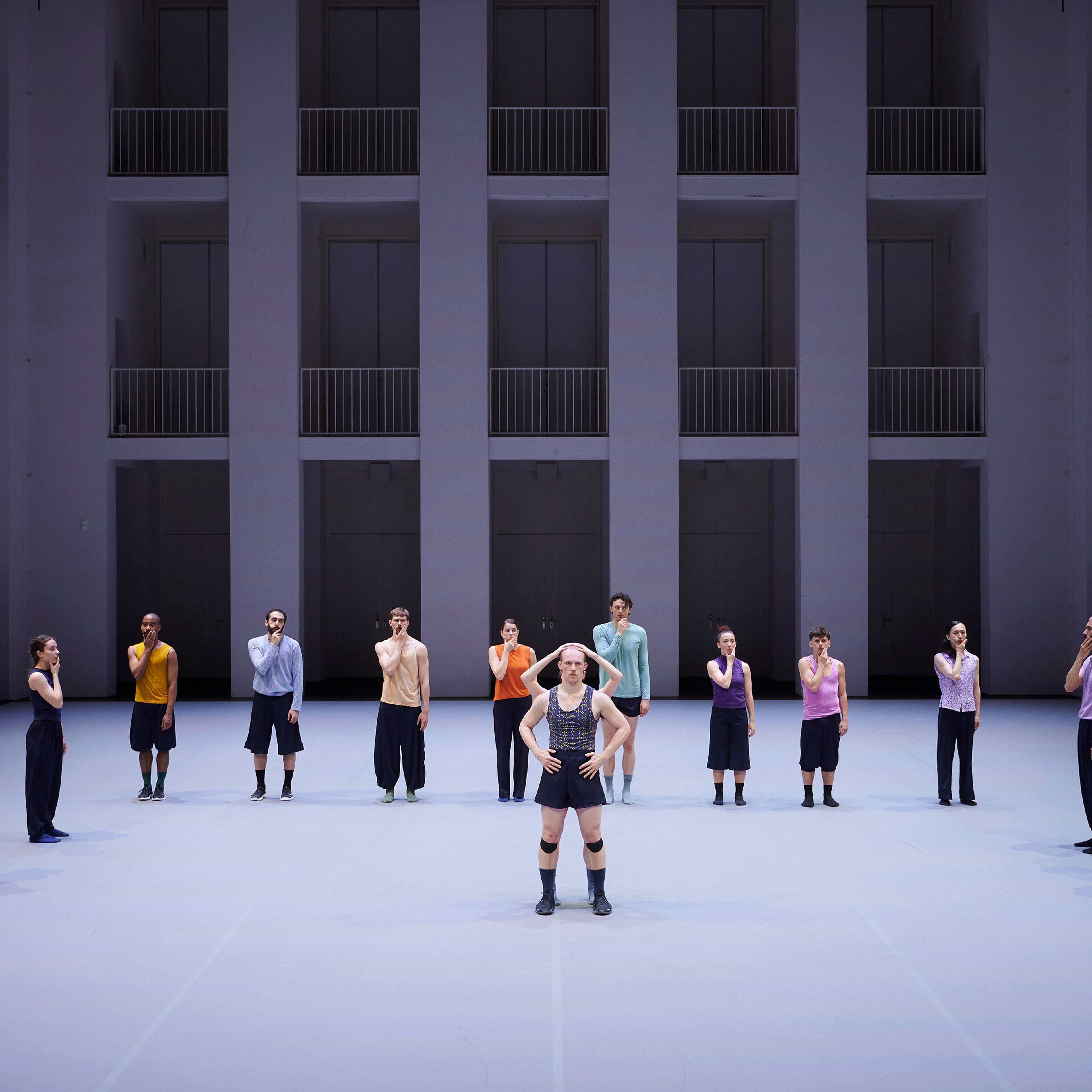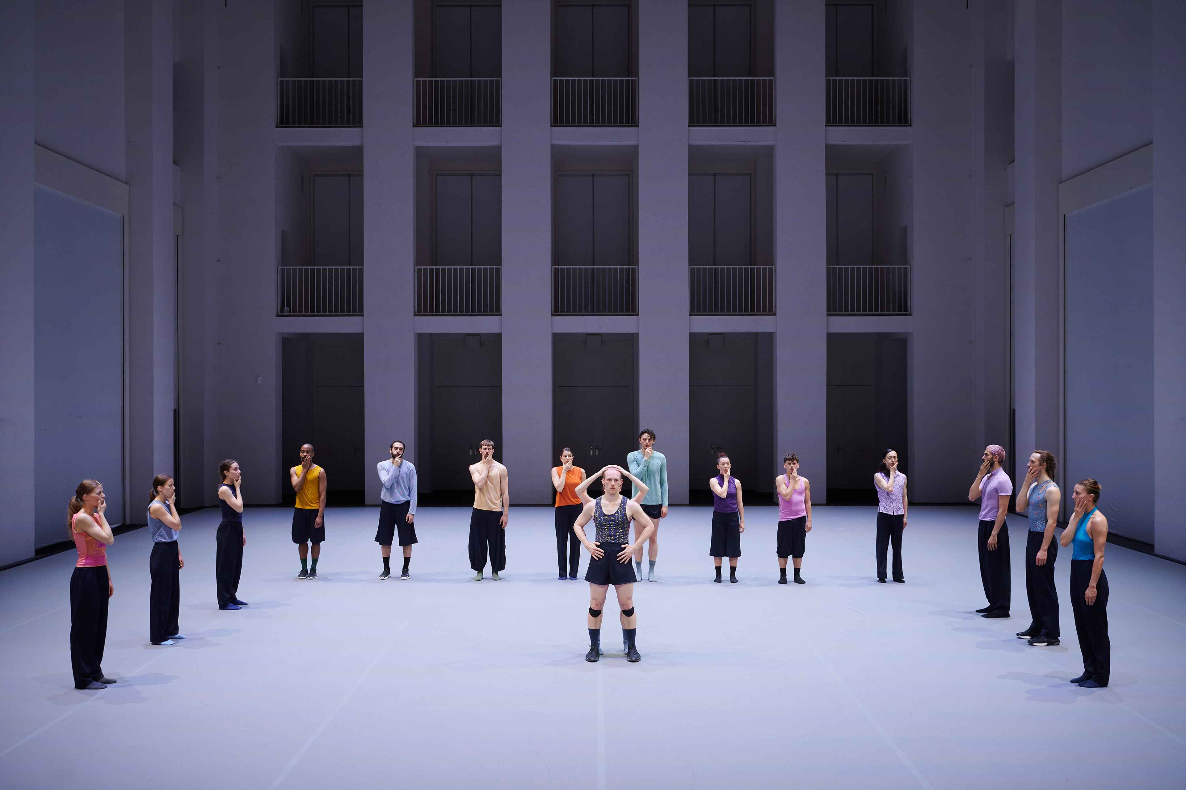 Nun kehrt Forsythe an den Ort seines langjährigen Schaffens zurück und entwickelt zum ersten Mal für die Company wieder eine neue Arbeit. Ausgehend von einem improvisatorischen Baukasten erschafft er eine strukturelle Ordnung, die anstatt für etwas anderes zu stehen, aus sich selbst heraus einen ästhetischen Genuss anbietet. Wie in einem Kaleidoskop bilden sich Muster, die innerhalb eines klaren Rahmens immer wieder unvorhersehbar und überraschend sind. Die Tänzer*innen erkunden das Bewegungssystem, das sie selbst bilden, bis an seine Grenzen. Das Publikum ist eingeladen, dieser Erforschung zu folgen und das Werk als lebendiges, atmendes System zu erleben.