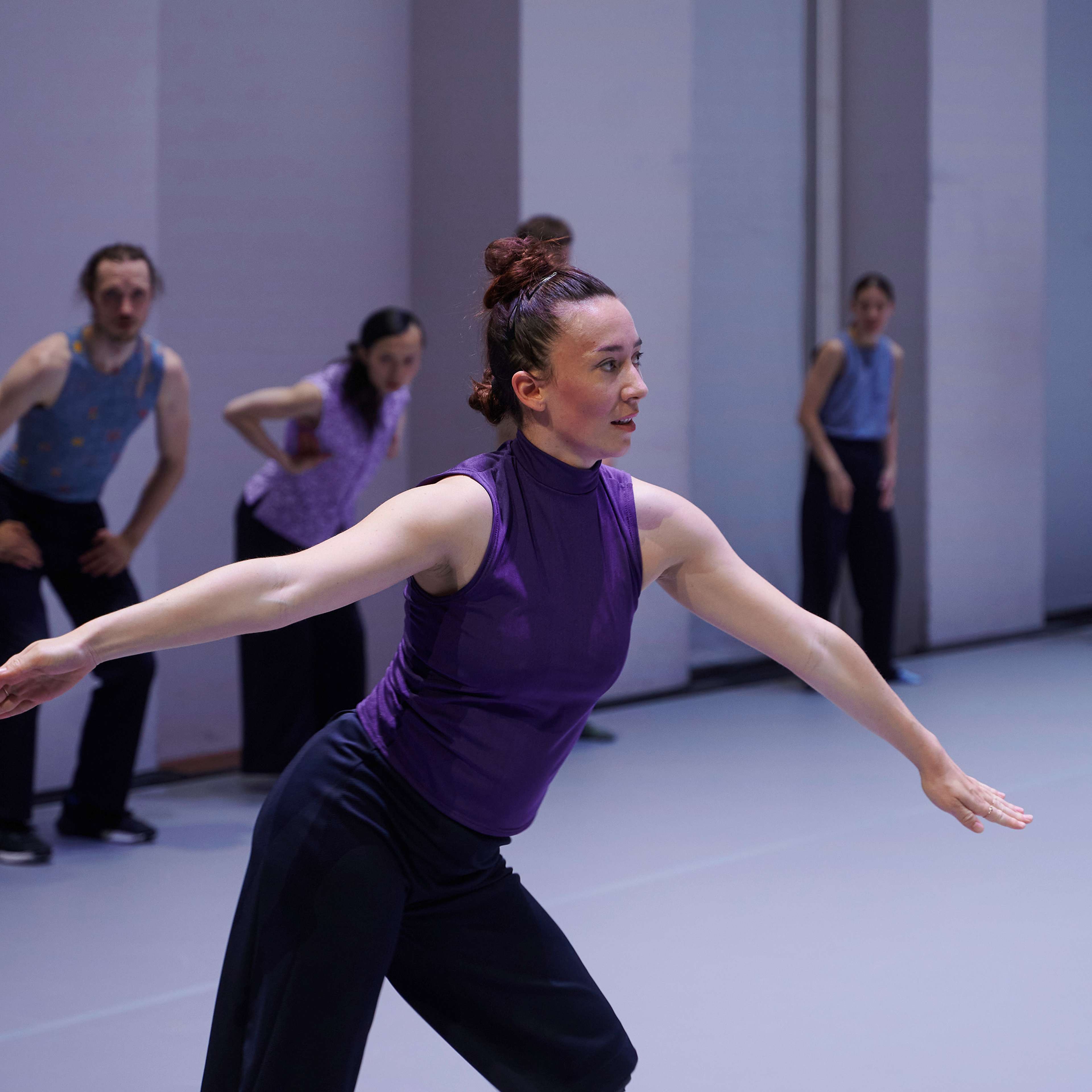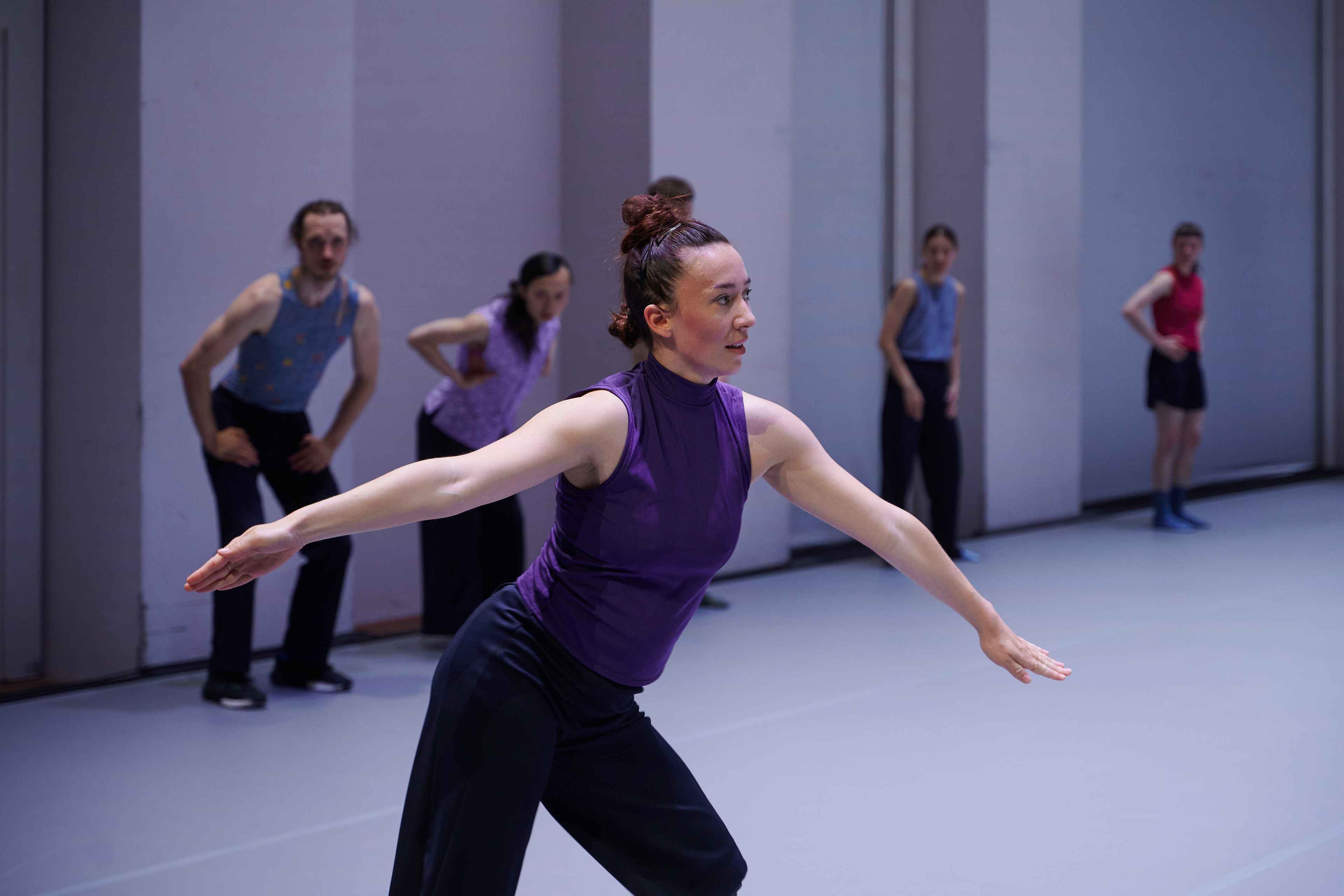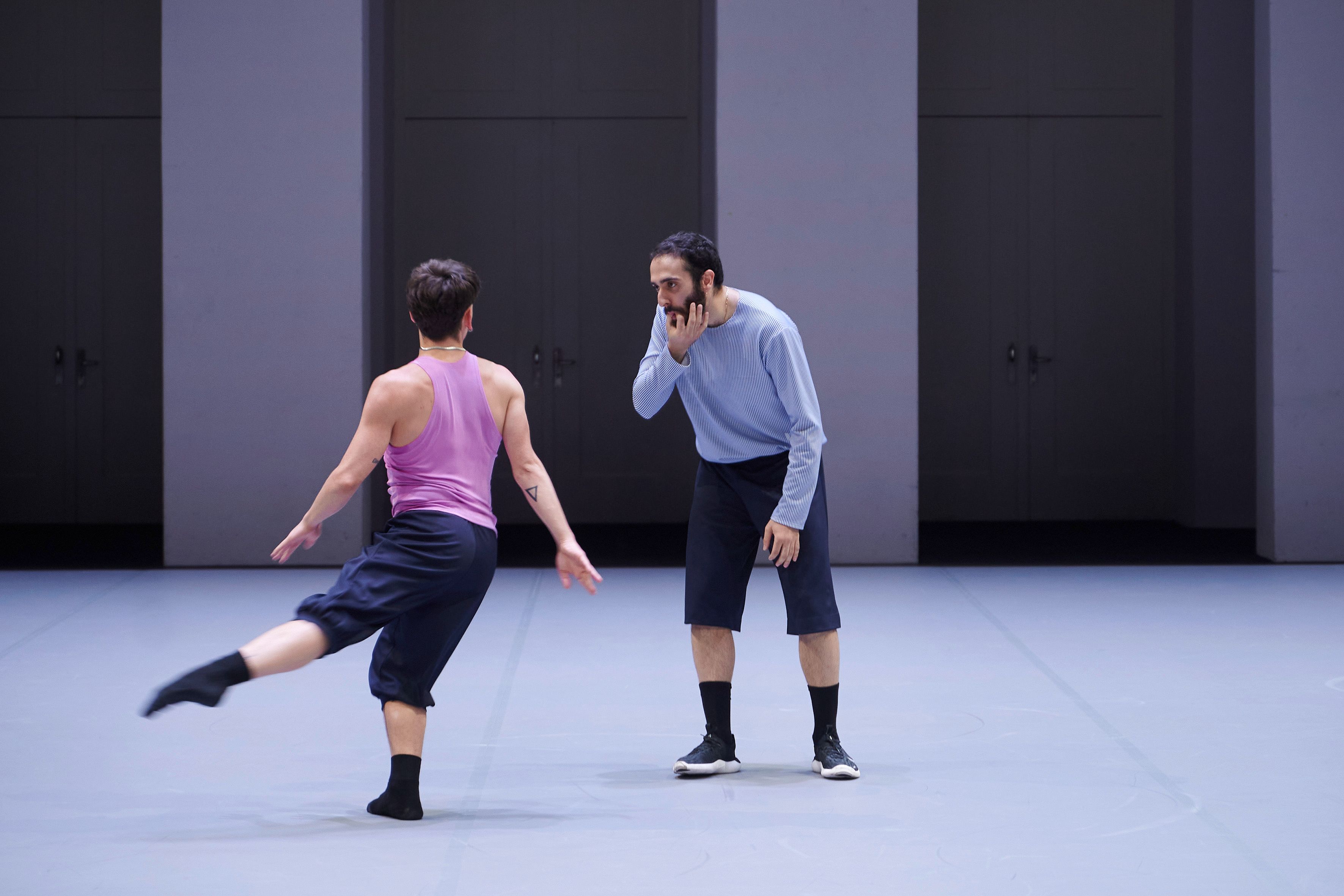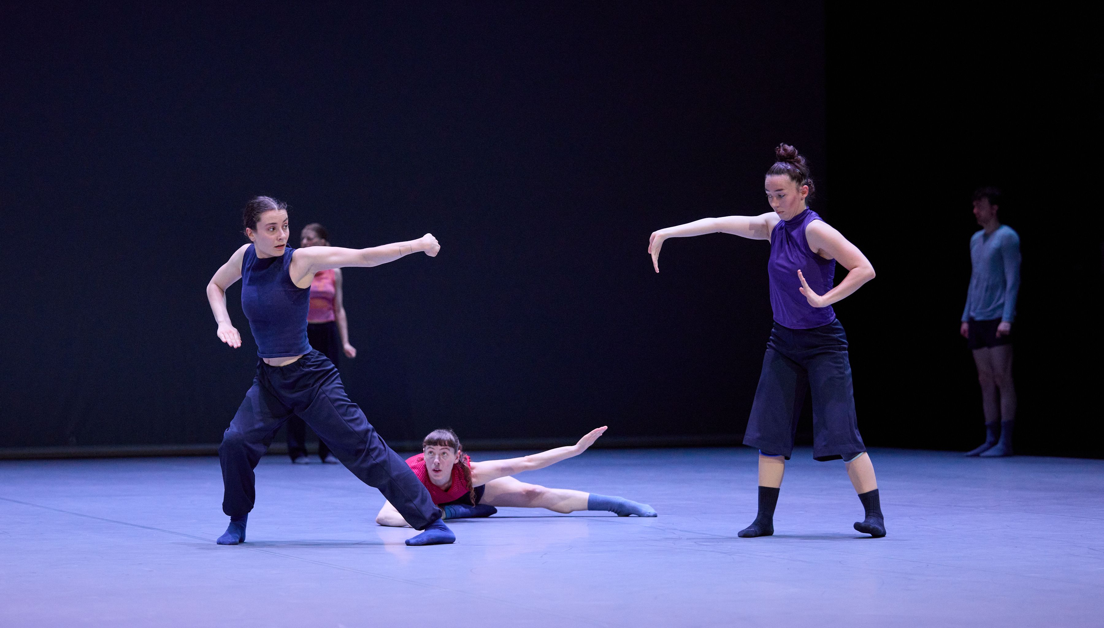 „William Forsythes neues Stück „Undertainment" für die Dresden Frankfurt Dance Company ist teuflisch faszinierend. Rhythmische Keuchlaute und Rufe der Tänzer*innen erschaffen eine klangliche Matrix, in der sich das Werk entfaltet. Es gibt auch eine physische Matrix: Das Ensemble bildet Linien, Kreise und Gitter, aus denen Soli, Duette und Trios hervortreten. Es ist, als wäre die Luft selbst zu einem 3D-Labyrinth geworden, durch das sich die Tänzer*innen schlängeln, ohne die Wände, oder einander, zu berühren. Die Atmosphäre wirkt konzentriert, sowohl durch die Probenkleidung der Tänzer*innen als auch durch die kompositorische Präzision. Auf dem fast leeren Soundtrack schwillt gelegentlich ein Lo-Fi-Summen an und verebbt wieder. Alles ist vielschichtig und kristallklar, so subtil wie prägnant: Forsythe choreografiert nicht nur die Bühne, sondern auch unsere Aufmerksamkeit.“ – Sanroy Roy, The Guardian, 01.10.2025