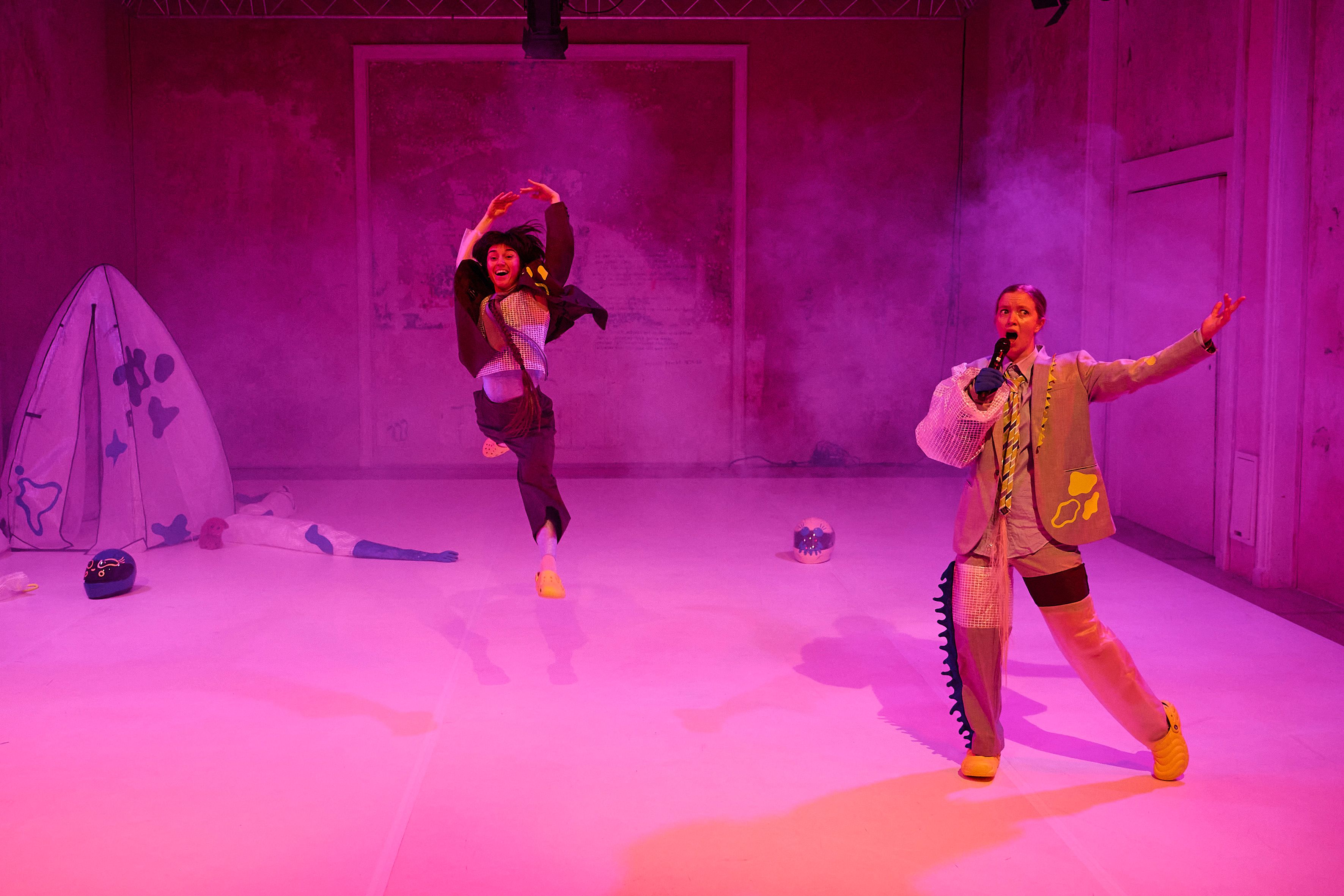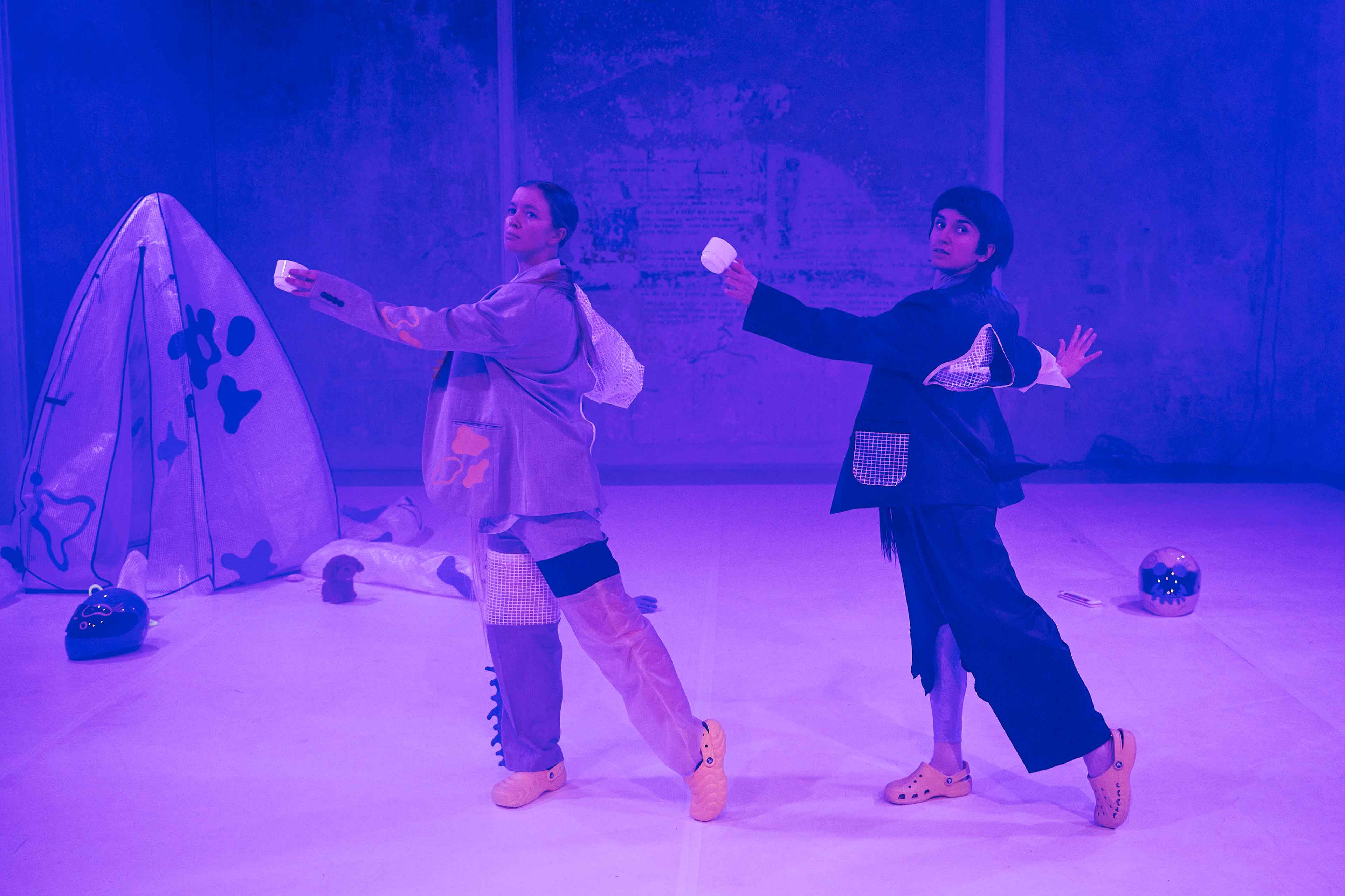 Ein paar Fragen bleiben noch offen, und nicht nur für die Außerirdischen. „Was geht, Erdling?“ ist ein Stück für alle ab 5 Jahren und ein humorvoller, spielerischer Versuch der beiden Choreografinnen und Tänzerinnen Caroline Beach und Saida Makhmudzade, sich mit menschlichen Gewohnheiten auseinanderzusetzen.