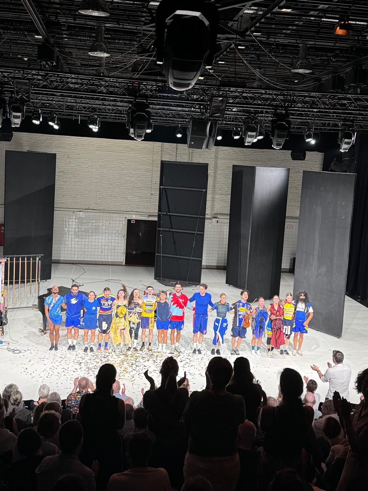 Es wurde wieder bunt und laut! Nach unserem Auftakt am Wochenende mit „One One One" konnten wir auch gestern das Publikum mit „À la carte" begeistern. Eingeführt wurde die Ruhrtriennale-Premiere von Philipp Scholtysik, Dramaturg der DFDC. Die Bühne für unsere Perfromance bot diesmal der Pact Zollverein. Dieser ist eine Spielstätte der diesjährigen Ruhrtriennale, die im Herzen des Ruhrgebietes liegt.