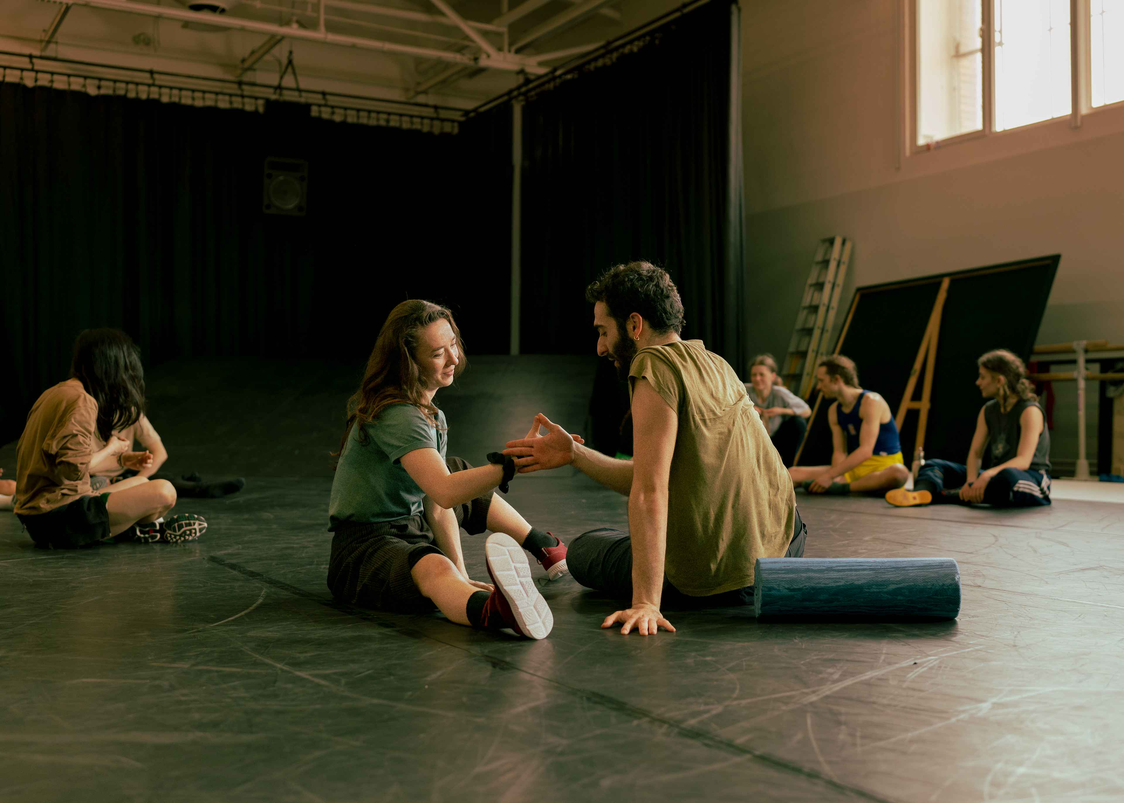 Ich habe mich als Person, und das, was ich tue, erstmal vorgestellt. Damit die Tänzer*innen und der Rest der Gruppe ein Gefühl für mich bekommen können. Auch Kaffee trinken und zusammen herumsitzen, sich in Gesprächen verlieren, gehört dazu, um das Vertrauen zu gewinnen. Dadurch kann ich später auch intime Momente fotografieren. Dazu gehört auch, etwas von mir preiszugeben - gerade wenn man so lange Zeit mit einer Gruppe verbringt. Es ist also wichtig, als Fotografin nahbar zu sein, damit die Protagonist*innen sich auch sicher genug fühlen.