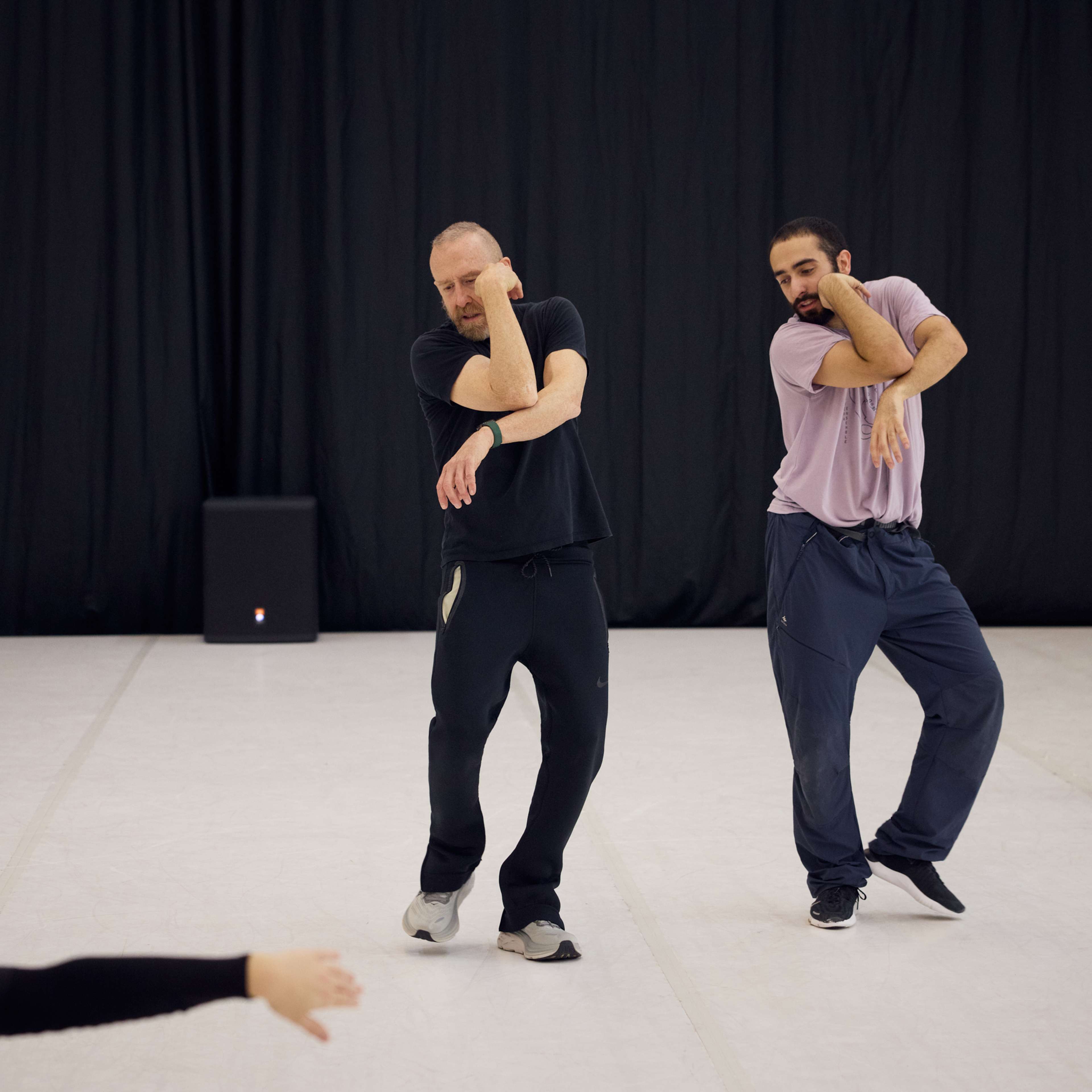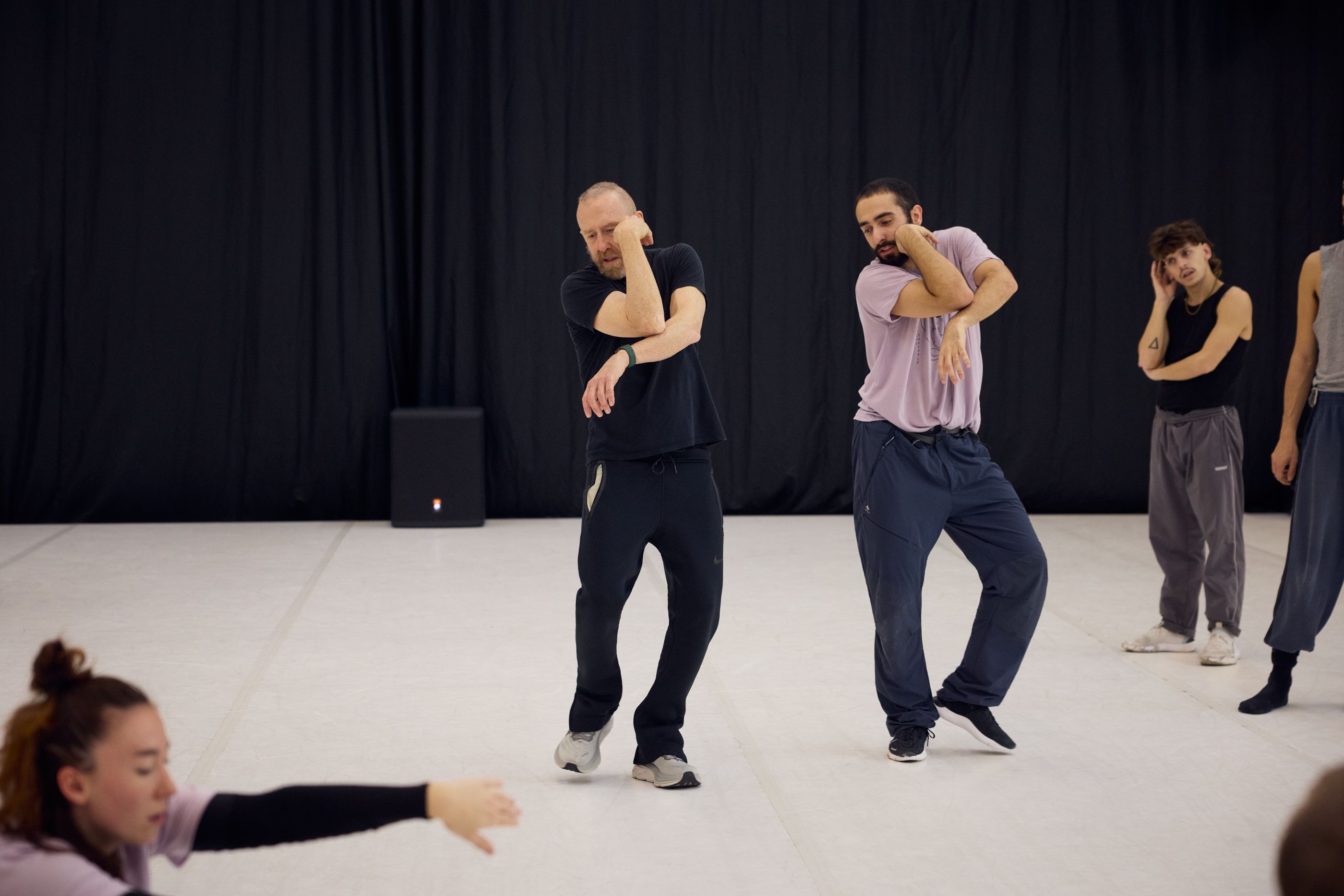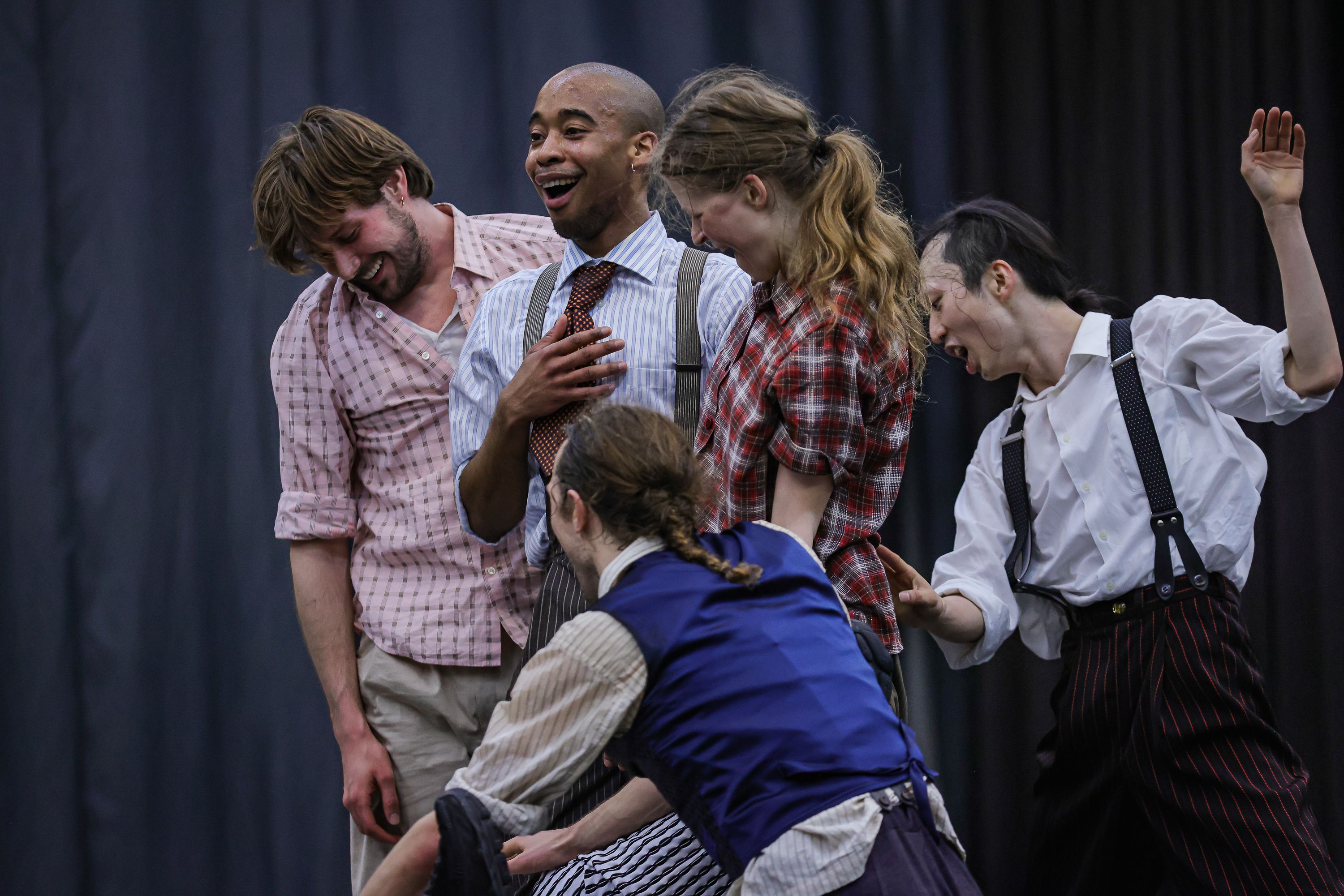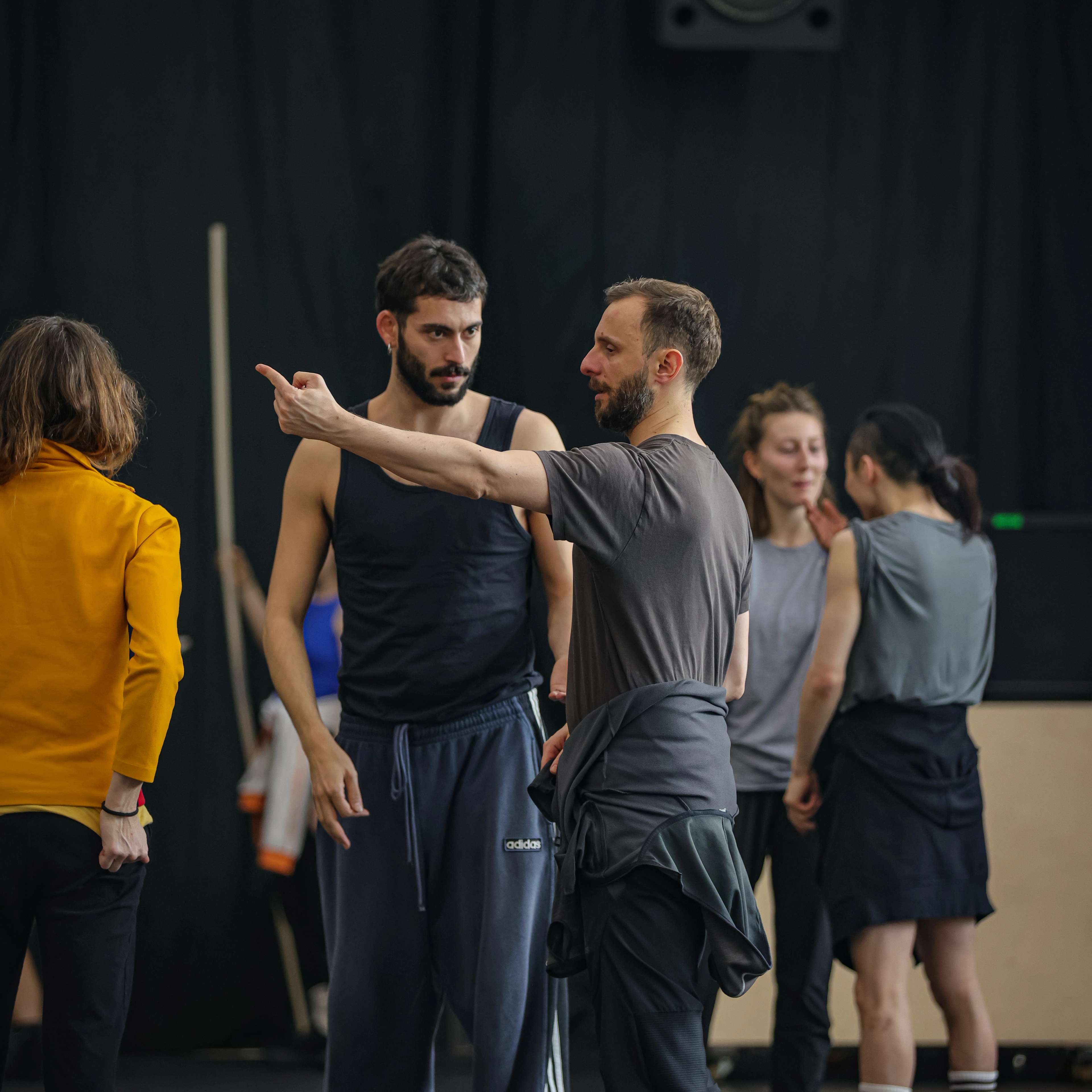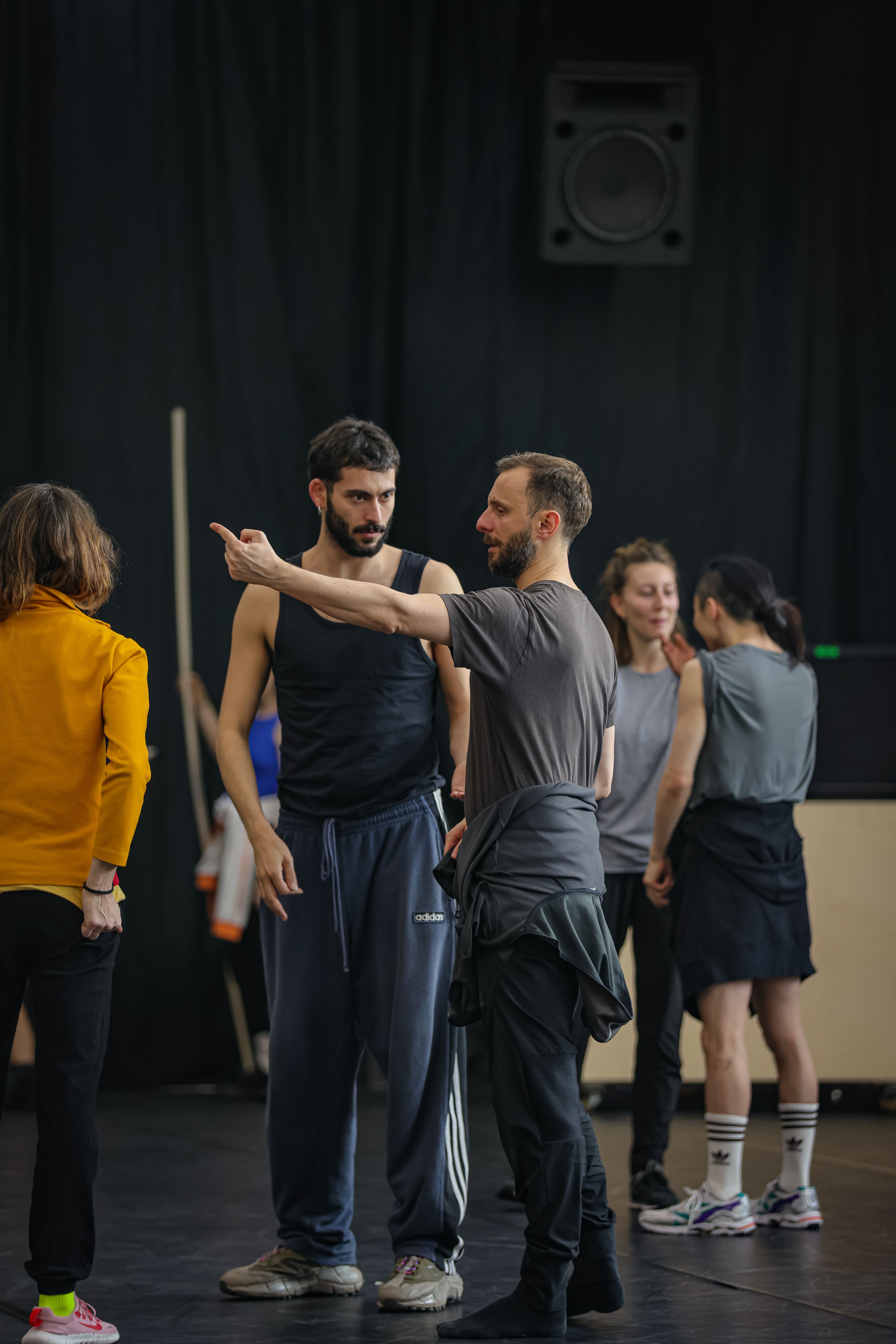An unserem Doppelabend „Welcome“ zeigten sie ihre Stücke „Wesenwelt“ und „Warpscapes“. In „Wesenwelt“ verwandelte die norwegische Choreografin unser Ensemble in ein kollektives Musikinstrument. Sergiu Matis hinterfragte in „Warpscapes“ den Begriff der Landschaft und den Zugang von Malerei zu dieser.