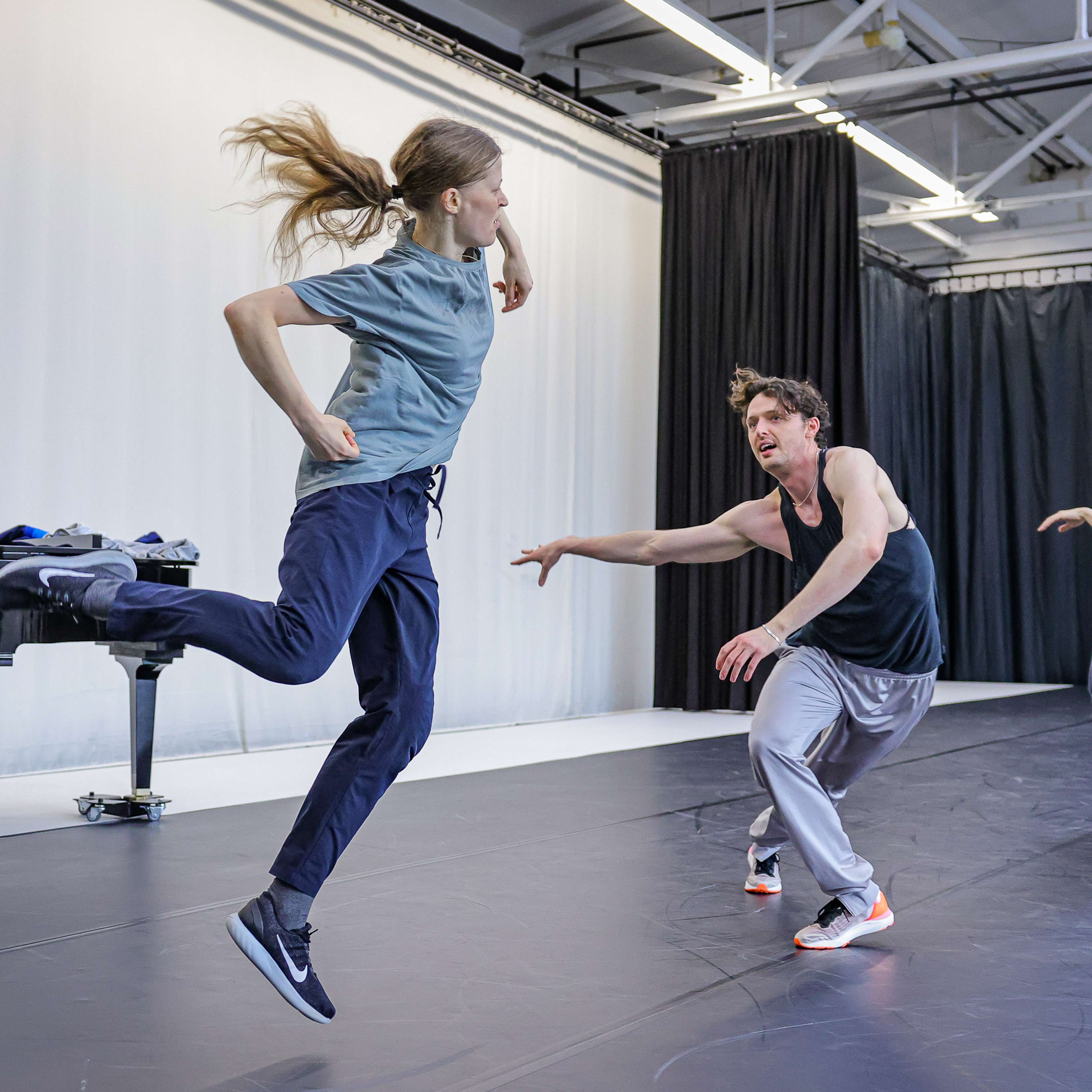 Die DFDC zeigt neben den Choreografien von Ioannis Mandafounis regelmäßig Neukreationen von anderen Choreograf*innen und lädt sie ein, mit unserem Ensemble gemeinsam ein Werk zu entwickeln. In diesem Jahr war es uns eine große Feude Sergiu Matis und Kristin Ryg Helgebostad bei uns in Frankfurt zu haben.