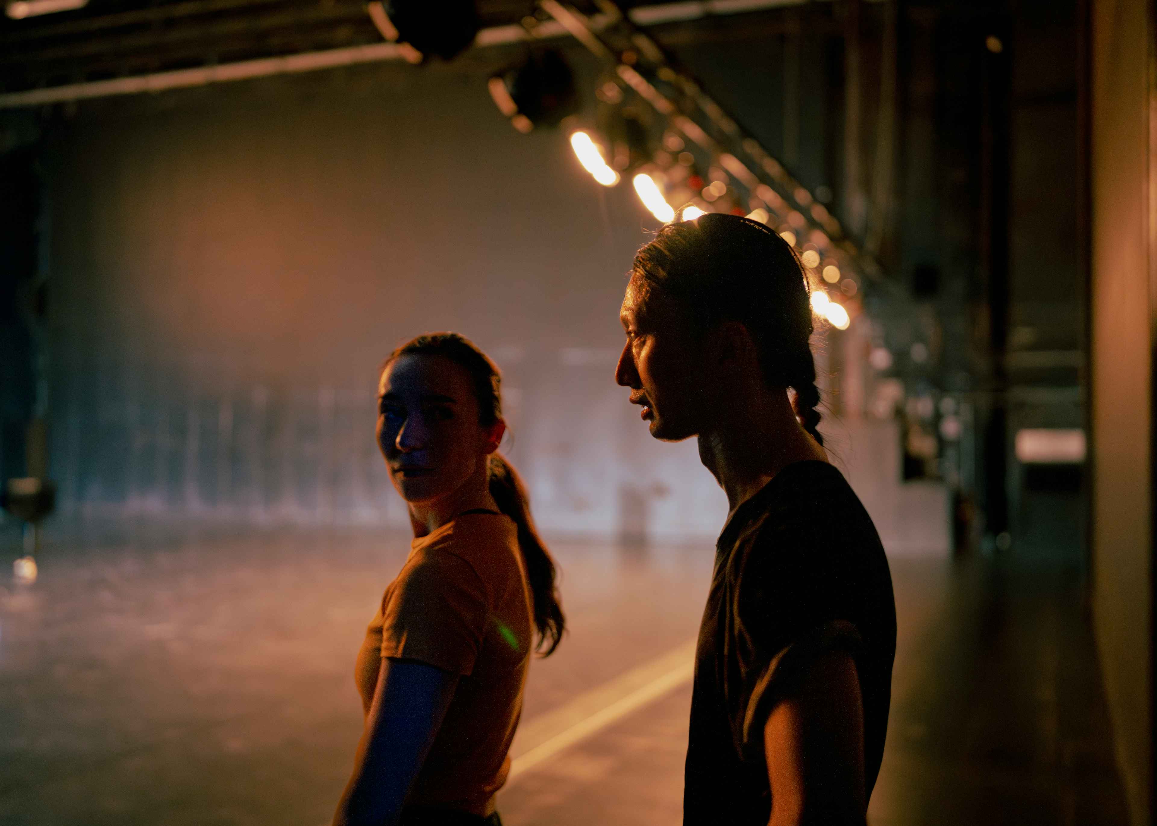 Die Foto-Kampagne dieser Saison ist in Zusammenarbeit mit der Dokumentarfotografin Sitara Thalia Ambrosio entstanden. Sie ist 2024 Residenzkünstlerin in Hellerau und ausgezeichnet mit dem PORTRAITS – Hellerau Photography Award 2023. Mit ihrem sensiblen und zugleich präzisen Blick hat sie die Company eine Woche lang begleitet und besondere Momente hinter den Kulissen festgehalten.