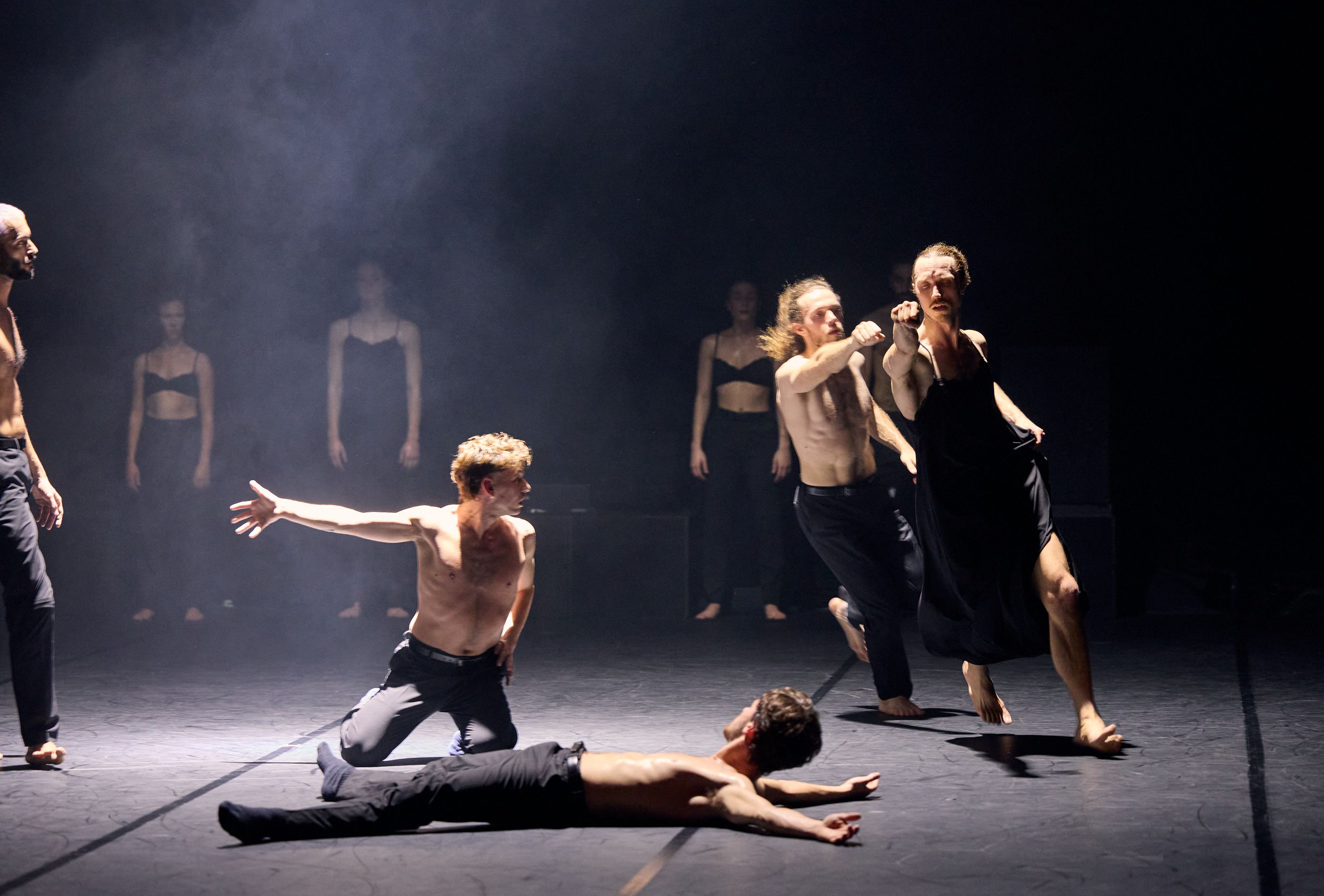 Vielleicht kann man ein choreografisches Werk nicht sprachlich erklären. Vielleicht sollte man das auch nicht. Auf die Frage, wovon das Werk handelt, lautet die richtige Antwort: Nun, ich habe keine Ahnung, wir müssen abwarten und werden es sehen. Das Einzige, das bei einer Choreografie von Emanuel Gat vorher festgelegt ist, ist das WIE. Das WAS, das WOVON und das WARUM sind alles Elemente, die sich aus dem Geschehen heraus ergeben.